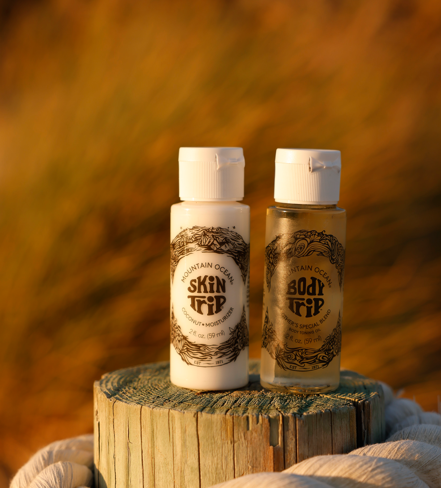 Meet the Mini Trip — our travel-ready pair of Skin Trip Coconut Moisturizer and Body Trip Toning Oil, now in perfectly packable 2oz bottles. Whether you’re road-tripping, beach-bound, or just need a little skin love on the go, this set gives you everything you need (and nothing you don’t) to stay smooth, hydrated, and adventure-ready.
